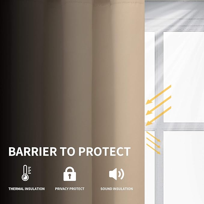 Easy-Going Blackout Curtains for Bedroom, Solid Thermal Insulated Grommet and Noise Reduction Window Drapes, Room Darkening Curtains for Living Room, 2 Panels (52x108 in,Beige)