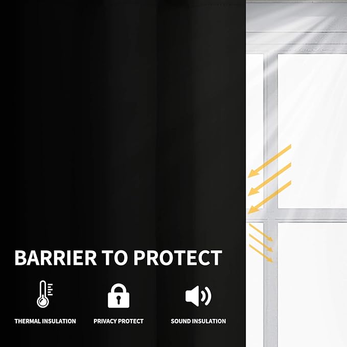 • Selection and Packaging: Our blackout curtains have 16 colors and 5 sizes. This product set includes 2 blackout curtain panels of 52" width x 96" length. Please refer to our size guide before purchasing.