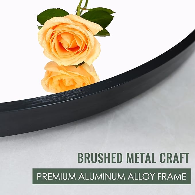 • Modern Brushed Frame Design: 36-inch black circle mirror is crafted of an aluminum alloy metal sleek frame, making it ideal for bathroom mirror, entrance mirror, vanity mirror, living room mirror