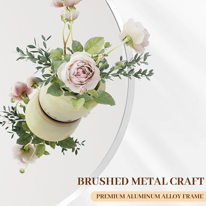 • Modern Brushed Frame Design: 24-inch white circle mirror is crafted of an aluminum alloy metal sleek frame which doubles as a protective bumper, making it ideal for high-traffic areas as bathroom mirror, entrance mirror, vanity mirror, living room mirror