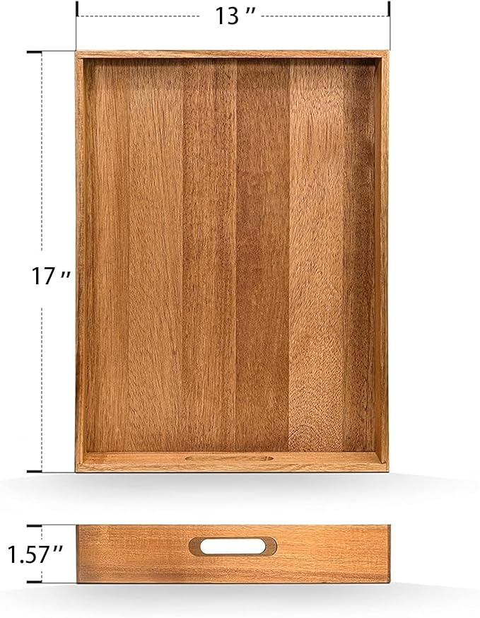 - Acacia Wood Construction: Crafted from premium quality acacia wood, our kitchen serving tray is stronger, sturdier and suitable for everyday heavy-duty use in the kitchen and commercial environments. Probably the last serving tray you will ever buy!