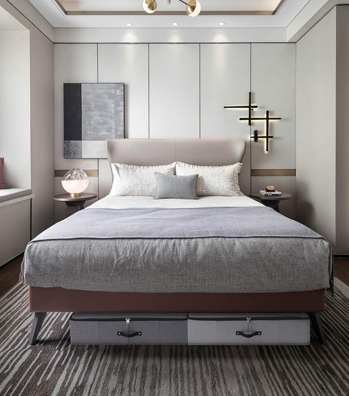 - MULTIPURPOSE STORAGE: This underbed storage case fits perfectly under your bed. And ideal for storing clothes, comforters, blankets, off season duvets, beddings, pillows, garments, sweaters, and so on. Keep your closet tidy and clean.They are Foldable when not in use,Stackable when filled with comforters,blankets,etc.Save space,perfect for small spaces in home, college dorm, bedroom, basement, attic, or more.