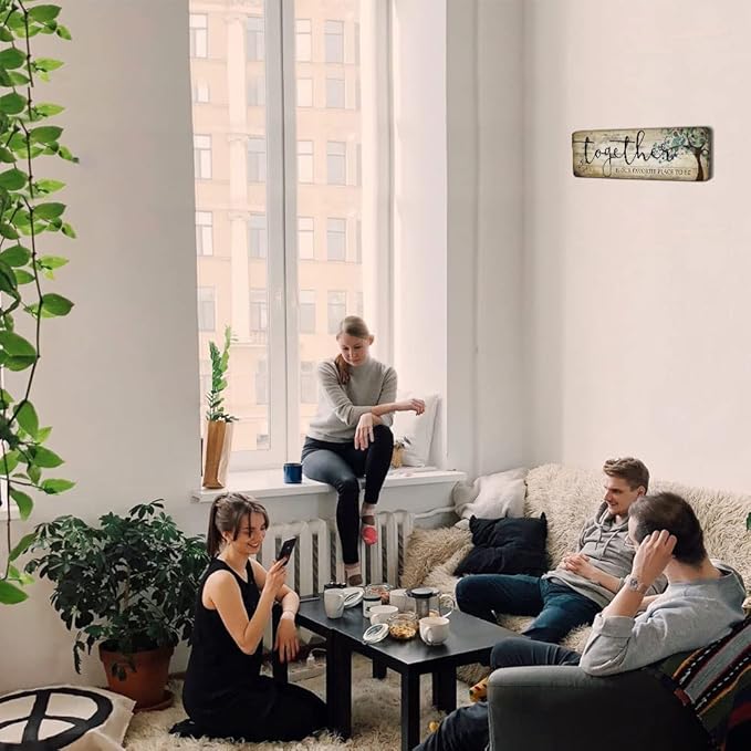 Family Art Decor Inspirational Quotes Wall Hanging Sign - Together is Our Favorite Place to Be - Motivational Home Art Decor Wood Plaque Sign 16"x5"