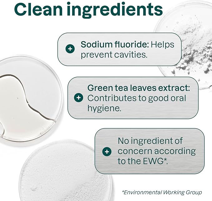 • CLEAN FORMULA: This EWG Verified toothpaste contains fluoride and is free from SLS, dyes, artificial sweeteners, and artificial flavors, for a worry-free experience.