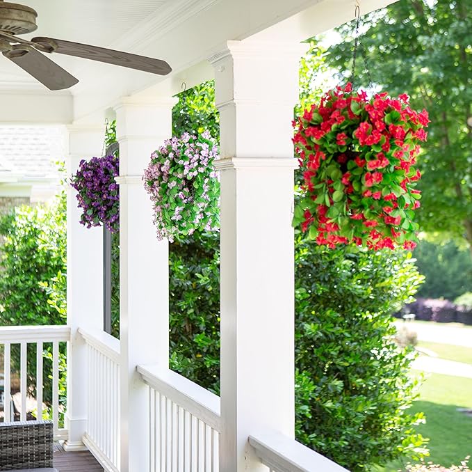 • GOOD QUALITY: The hanging basket and artificial flowers were made of good quality material that don’t require maintenance after assembly. It’s UV resistance and won’t fade, sturdy enough for any weather. No watering needs.