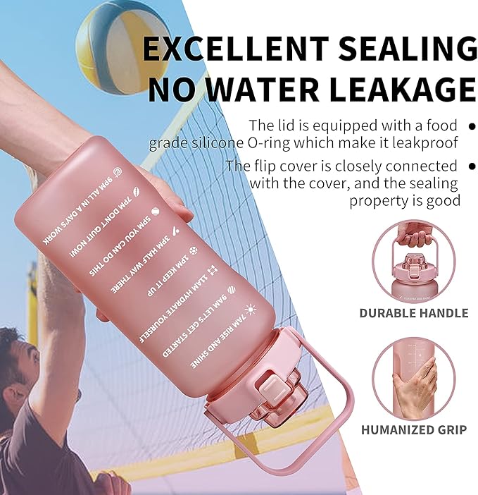 - 💪【Motivational Quote & Time Marker】The 64 oz - 2 liter large fitness water bottle jug with straw is with time markers and unique motivational measurement statements on it, the half gallon water bottle with tracker is the best choice of reminding you to stay motivated to drink enough water daily. It is important and easy for achieving healthy fitness goals including weight loss, muscle gain, keep hydrated and healthy with the motivational water bottle.