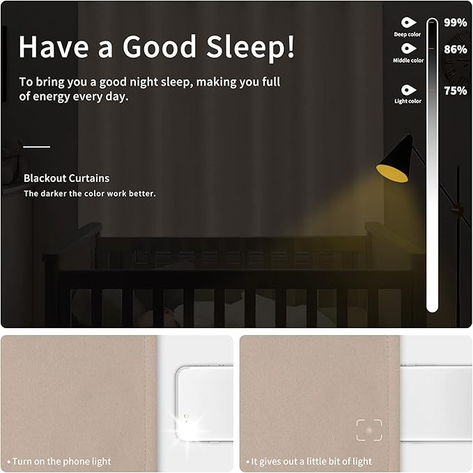 • Easy to Care: These blackout curtains are machine washable with cold water, please do not bleach, tumble dry on low, iron at low temperature if need.