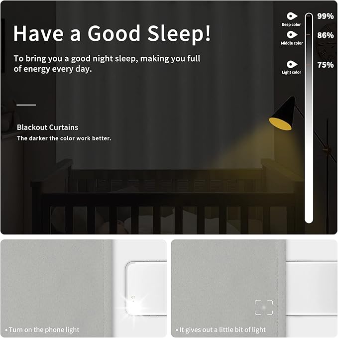 • Easy to Care: These blackout curtains are machine washable with cold water, please do not bleach, tumble dry on low, iron at low temperature if need.
