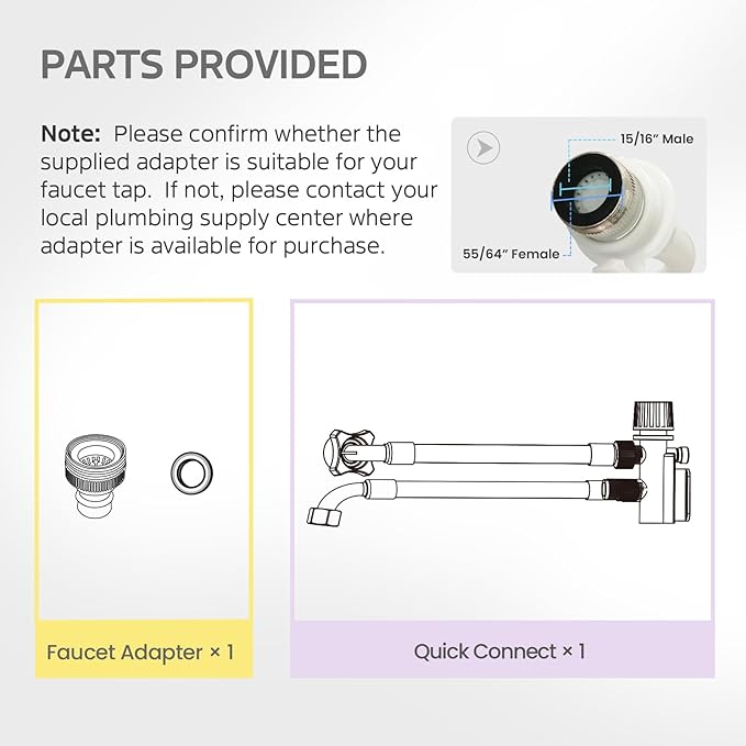 - Included Components : Inlet hose, Drain hose, Faucet adapter, Quick connect, User manul