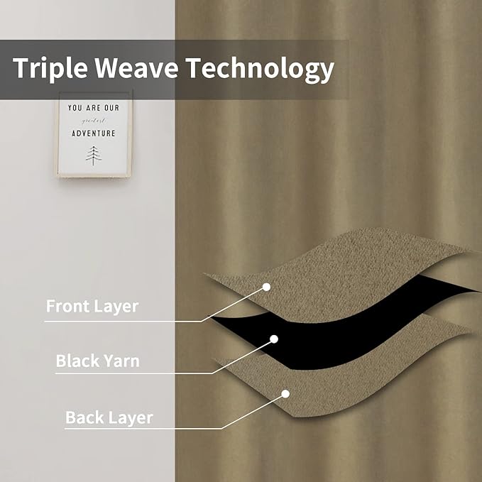 Easy-Going Blackout Curtains for Bedroom, Solid Thermal Insulated Grommet and Noise Reduction Window Drapes, Room Darkening Curtains for Living Room, 2 Panels(46x63 in, Tan)