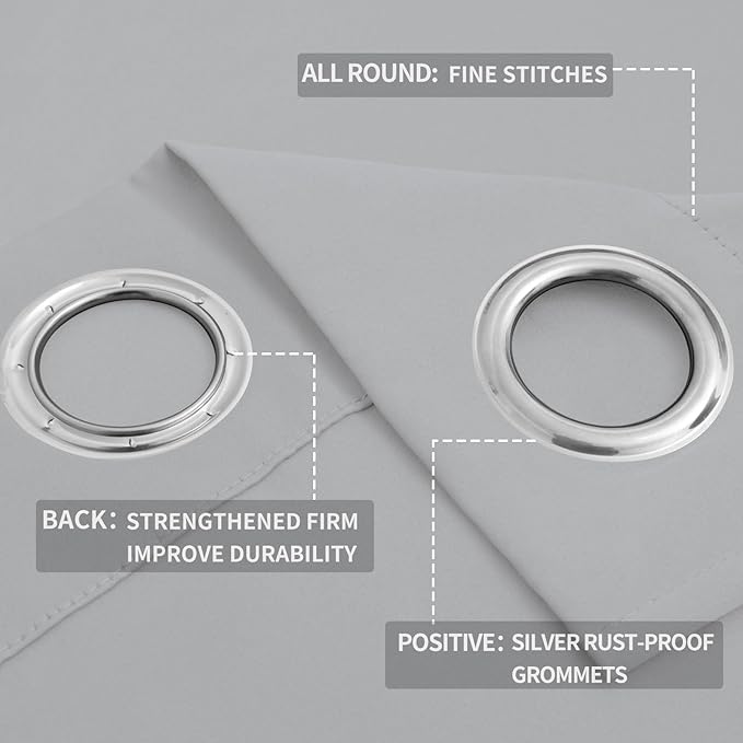 • Easy to Install: Each curtain panel has 8 silver metal grommets on top. Each grommet inner diameter is 1.6 inch, fits easily with standard curtain rods. Easy to hang, and slide smoothly. Perfect for office, bedroom, living room.