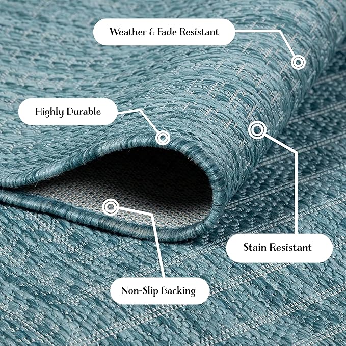 Adiva Rugs Outdoor Indoor Area Rug, Weather Resistant, Easy to Clean, Stain Resistant Floor Mat for Dining Room, Backyard, Deck, Patio (Aqua Weiss, 8' x 10')