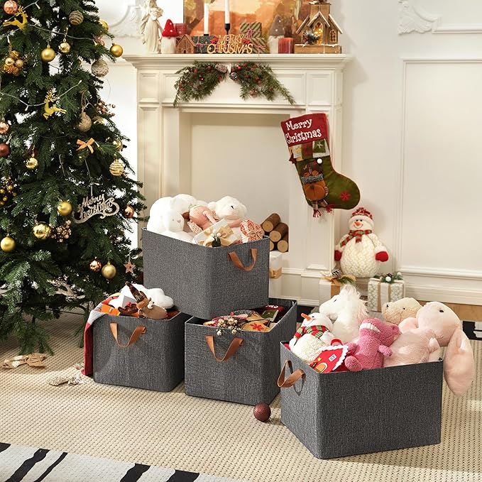 GRANNY SAYS Closet Storage Baskets, Collapsible Fabric Storage Bins with Metal Frame, Clothes Organizer Bins, Extra Large Baskets for Shelves, Dark Gray, 4-Pack