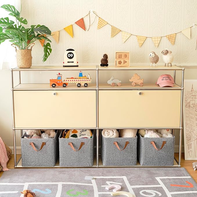 • Premium Material - These storage boxes are made of Imitation linen fabric, making them durable and easy to care for. The bottom uses thickened MDF board and can bear a load of up to 30 pounds.