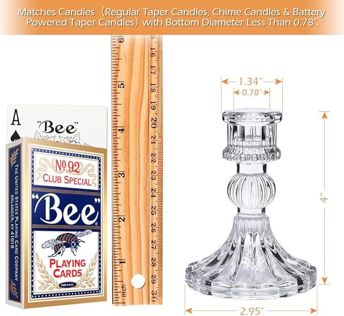 • ❤️Candlestick Holders Set -- Universal Taper Size: Top inner diameter 0.78'', bottom diameter is 3.15''x 4''H. [NOTE]You wanna candles stands straight? Melt the bottoms of the candlesticks into the holder and hold it in place for 10 sec!