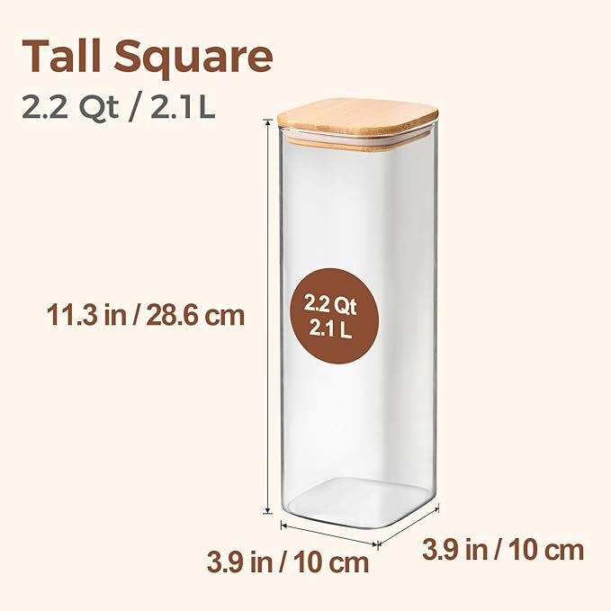 - Clear Kitchen Jars: Enhance your kitchen organization with our square pasta storage containers, featuring a transparent design; the see-through glass allows effortless monitoring of food level, enabling you to track usage and assess food storage condition