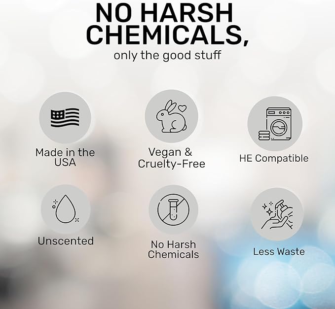 • YOUR CLOTHES WILL LOVE IT - We designed this concentrated blend of gentle washing detergents and natural fragrances to soften and reduce wrinkles and eliminate odors, stains, and dirt. Our high efficiency laundry detergent is ideal for everyday laundry, including cottons, linens, blends, and durable synthetics. It's also safe for whites and all colors, and you can use it in hot, cold, hard, or soft water.