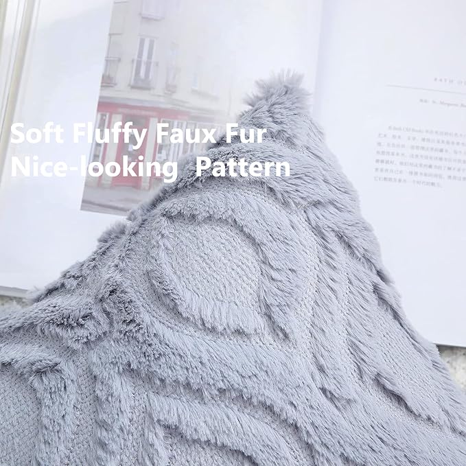 decorUhome Throw Pillow Covers 18x18 Inch Set of 2, Soft Plush Faux Wool Blue Grey Couch Pillow Covers, Spring Solid Dyed Accent Pillow Cases for Sofa Bed Living Room Home Decor