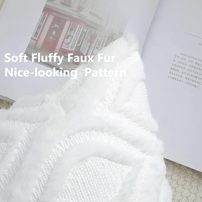 decorUhome Fall Throw Pillow Covers 12x20 Inch Set of 2, Soft Plush Decorative Faux Fur White Solid Couch Pillow Covers, Accent Farmhouse Neutral Lumbar Euro Pillow Cases for Sofa Bed Living Room