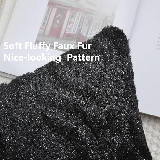 decorUhome Fall Throw Pillow Covers 26x26 Inch Set of 2, Soft Plush Decorative Faux Fur Black Solid Couch Pillow Covers, Accent Farmhouse Neutral Square Euro Pillow Cases for Sofa Bed Living Room
