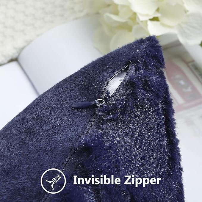 decorUhome Fall Throw Pillow Covers 22x22 Inch Set of 2, Soft Plush Decorative Faux Fur Navy Blue Solid Couch Pillow Covers, Accent Farmhouse Neutral Square Euro Pillow Cases for Sofa Bed Living Room