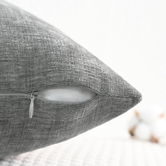 CaliTime Throw Pillow Covers Decorative 24 X 24 Inches Pack of 2 Cozy Chenille Cushion Cases for Couch Sofa Bed Living Room Home Medium Grey