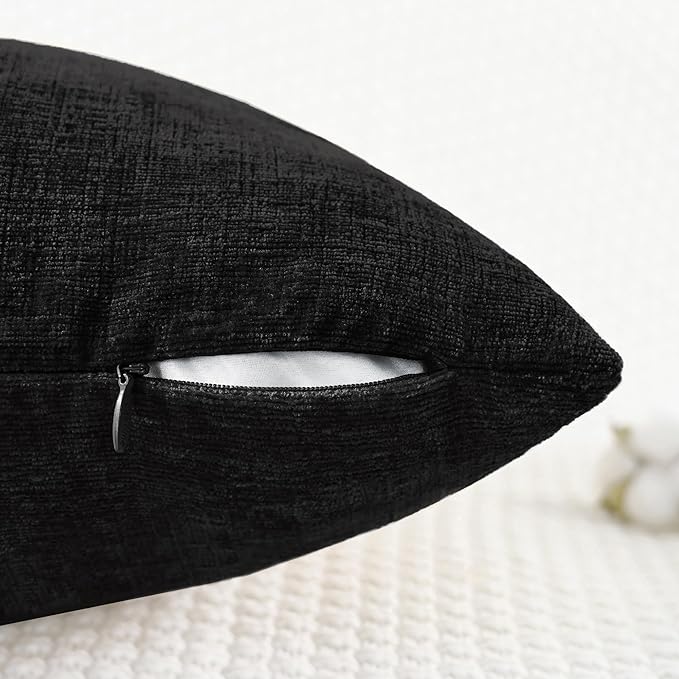 CaliTime Throw Pillow Covers Decorative 26 X 26 Inches Pack of 2 Cozy Chenille Cushion Cases for Couch Sofa Bed Living Room Home Black