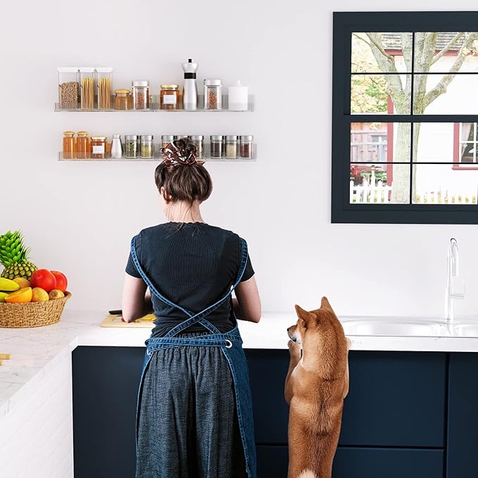 - STRUCTURE DETAILS: The spice rack are made by high transparency 100% acrylic material. With diamond polish edge. You will get a bright and beautiful spice rack. After edge scraping, the spice rack won't be so sharp and keeping you and your loved ones safe from injury.The hot bending design make the wall mounting shelves very durable. The acrylic bearing strength would be much stronger than glass. You can put it in the kitchen wall and bathroom wall.