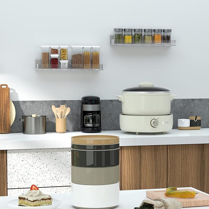 - STRUCTURE DETAILS: The spice rack are made by high transparency 100% acrylic material. With diamond polish edge. You will get a bright and beautiful spice rack. After edge scraping, the spice rack won't be so sharp and keeping you and your loved ones safe from injury.The hot bending design make the wall mounting shelves very durable. The acrylic bearing strength would be much stronger than glass. You can put it in the kitchen wall and bathroom wall.