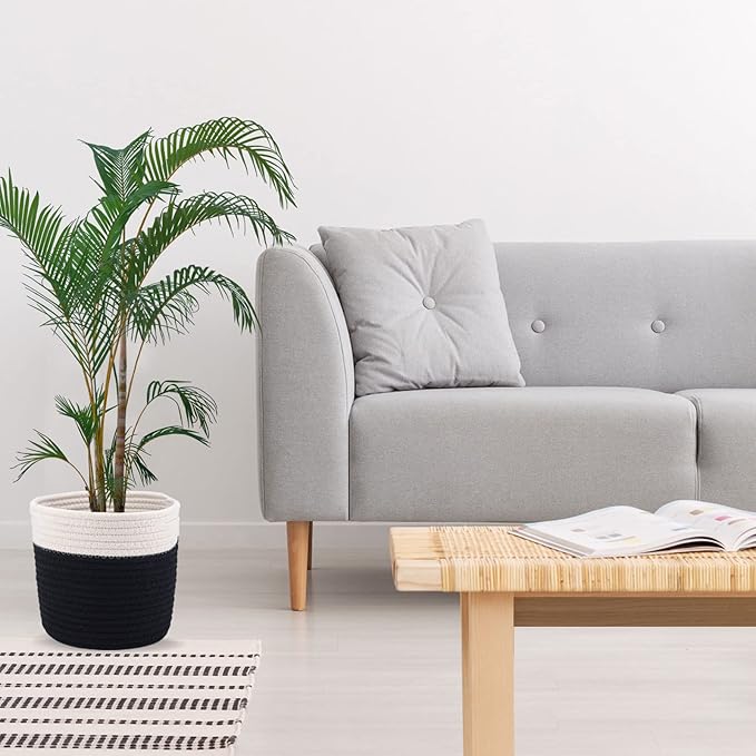 6.5 inch Planter Baskets for Indoor Planters Cotton Rope Flower Plant Pots Cover,Woven Storage Baskets for Crafts,Organization Modern Home Decor H6 3/4" x W6 1/2" Black&White