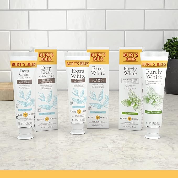 • Includes three 4.7 oz tubes of Burt’s Bees Purely White Zen Peppermint Fluoride-Free Toothpaste