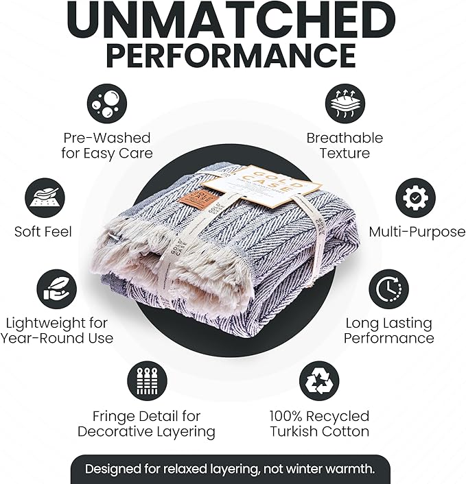 - LIGHTWEIGHT LAYERS FOR RELAXED MOMENTS: Woven from 100% recycled Turkish cotton, this breathable and cute throw blanket adds a soft, textured touch to your space; made for layering on the couch, tossing over your shoulders, or adding a laid-back look to your decor