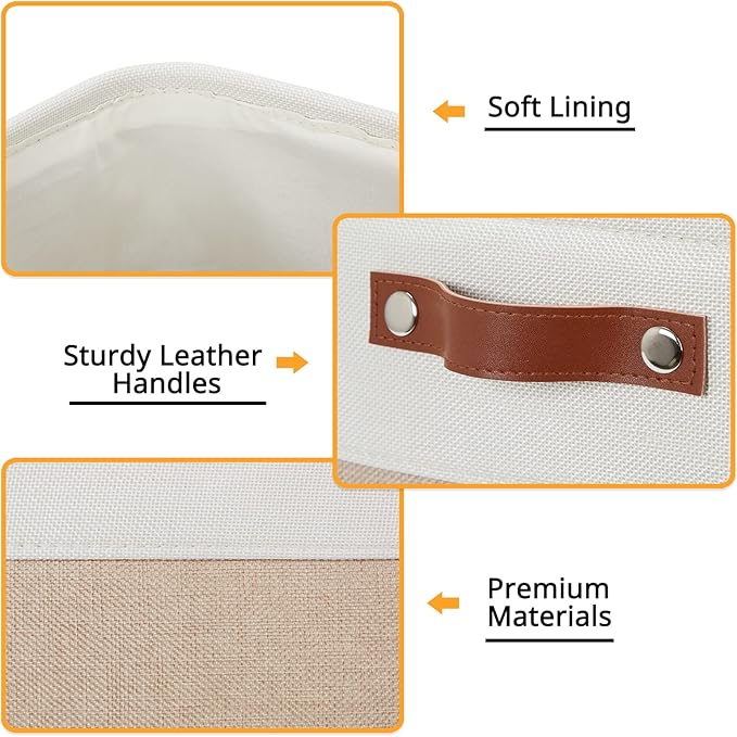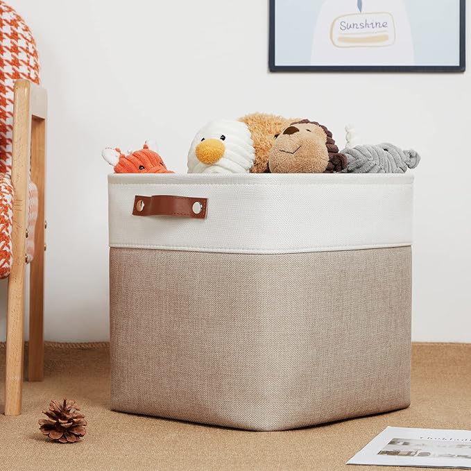 DULLEMELO Cube Storage Bins - 4 Pack Foldable Large Storage Baskets 12 inch Gifts Empty Fabric Bins for Home Office Cubes Organizer Closet, Shelves, Toy, Nursery (4 Pack - 12" White&Khaki)