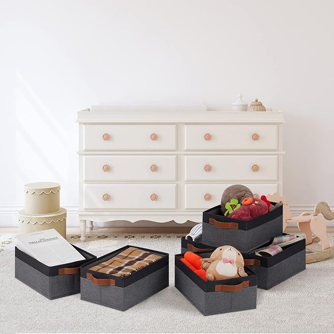 GhvyenntteS Small Fabric Storage Bins with Handles 6 Pack, 11.8" x 7.87" x 5.11" Storage Baskets for Shelves, Baskets for Organizing Clothes Underwear Socks Hats DVDs (Grey/Black)