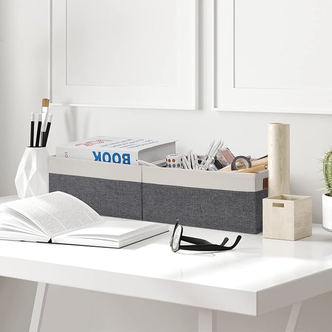 - 👍【SMALL STORAGE BINS】Set of 6 small storage bins, dimensions (each): 11.8(L) x 7.87(W) x 5.11(H) inch, which can store a variety of items to organize your home or office. With their perfect size and stylish appearance, these fabric storage baskets effortlessly blend with many furniture styles and color palettes, while keeping your home organized