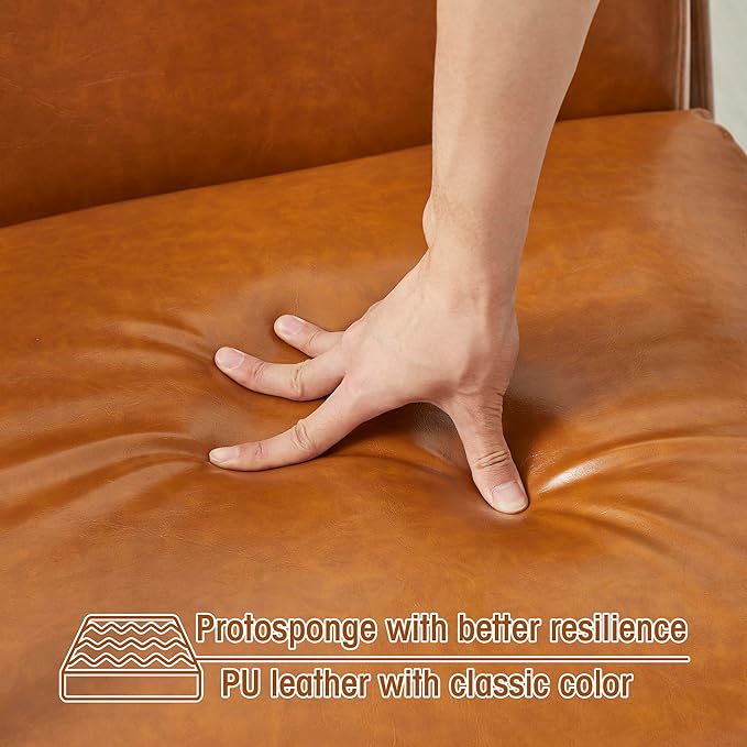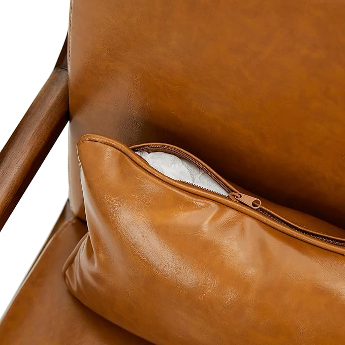 • Design: This vintage-look PU leather armchair is designed with a solid wood frame bringing the mid-century modern style to your home. Also the walnut color frame of this small space chair fits the solemn elegance of your room