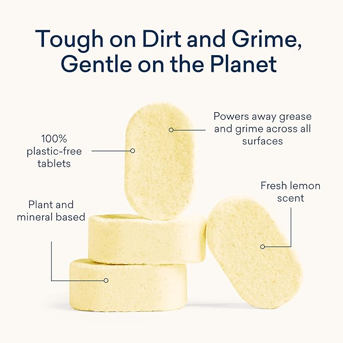• REFILLABLE, AWARD-WINNING MULTI-SURFACE CLEANER. Never worry about who’s eating off the counter again. Our 100% plastic-free tablets are safer for your family (pets included!), healthier for the planet, and proven to get your surfaces sparkling clean. Just fill with water, drop in a tablet, and voila—you’re ready to fight grease and grime on everything from stovetops and countertops to wood and stone.