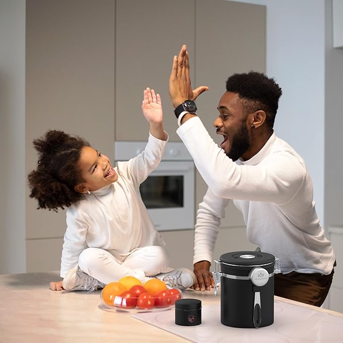 • 【Date tracking and airtightness】The coffee canister is designed with a lock, the lid is equipped with a silicone gasket, and there is a date tracking wheel on the top of the lid. The shelf life can be set when the coffee is loaded. The next time you open it, you will know how long it will be stored.