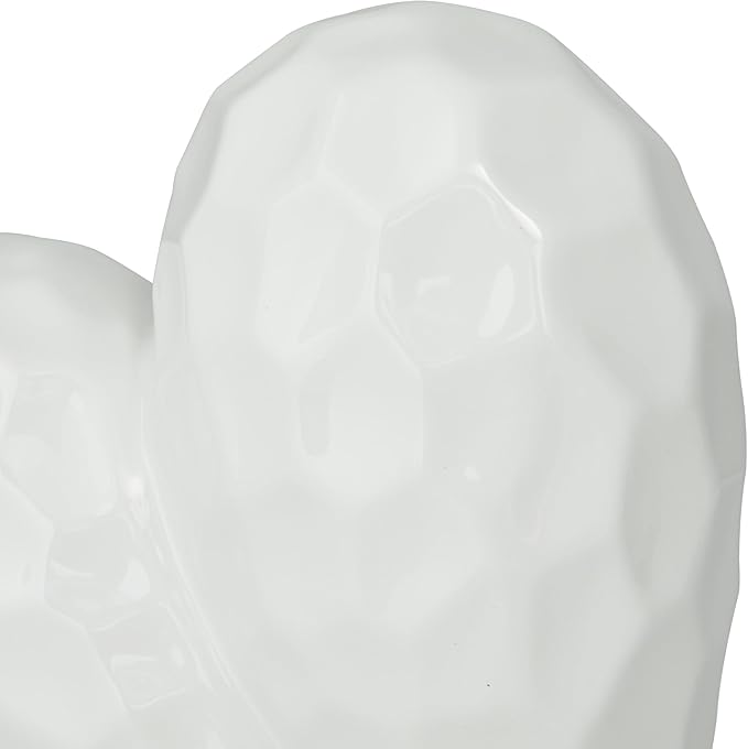 • HEART ASYMMETRICAL ACCENT STATUE: The porcelain sculpture showcases a slanted heart figure with a faceted and concave design exterior, adding unique visual interest