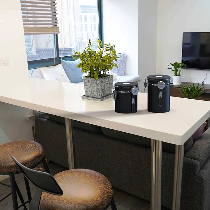 - 【Humanized design】: This coffee storage containers comes with a thoughtful design and an adjustable date tracking wheel above the coffee containers, so you can always check the storage date to know the storage time.