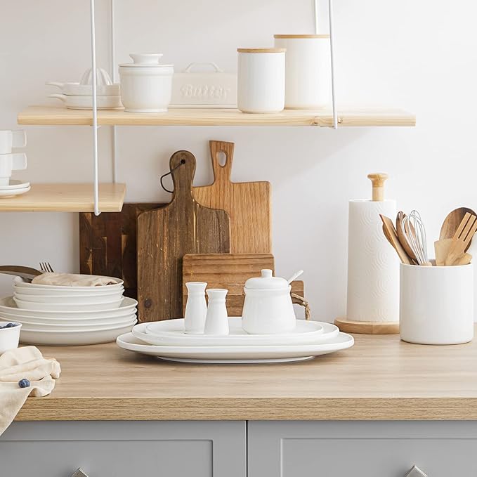 - Easy to Clean and Store: Stacked and zero tilting features for cupboard space efficiency. Soft white porcelain serving platters can be cleaned easily and quickly with soap. These dinner plates fit in my cupboards better than the standard round serving dishes.