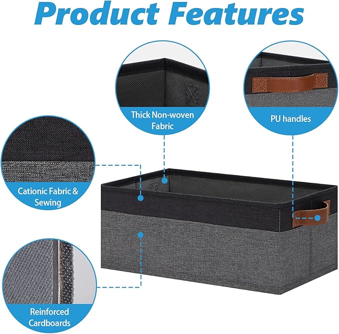- 【FOLDABLE STORAGE BASKET】The collapsible and lightweight baskets for organizing allows you to easily place it when not in use, just by pulling out the stiff bottom cardboard, saving space when not in use or transportation. They are quite easy to assemble, place the stiff bottom cardboard inside and it's ready
