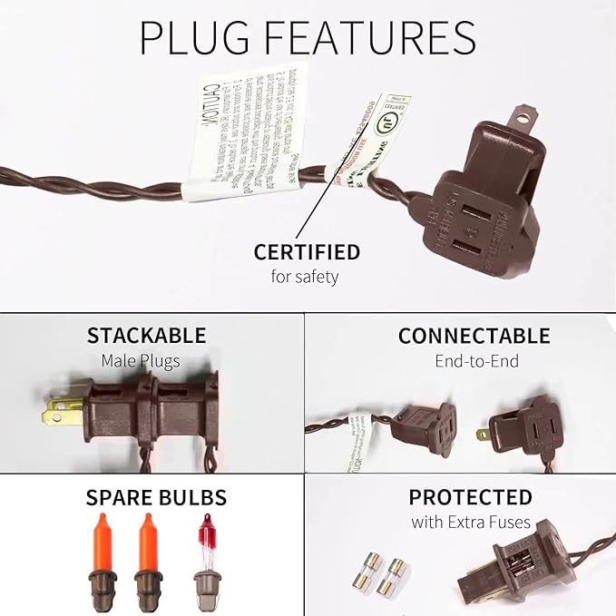 • Safty and Easily: High quality UL certified products ensure the safety of you and your family, Decorate with 100 halloween incandescent mini lights with brown wire will give a soft festive feel to your Christmas.