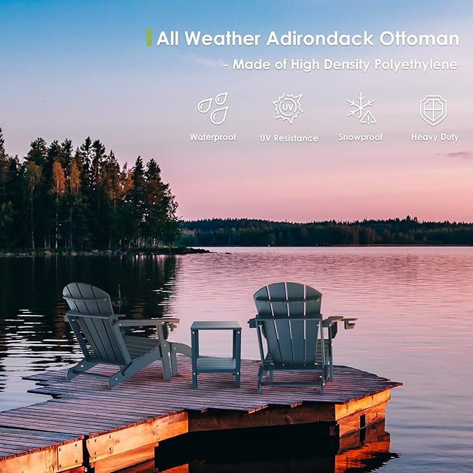 - 【True HDPE】 Upgrade your outdoor experience with GreenVines HDPE (High Density Polyethylene) Adirondack ottoman. Our composite material offers superior quality and safety compared to typical PE or PS ottomans. Unlike traditional wood ottomans, our HDPE ottomans are waterproof, weather-resistant, fade-resistant, and resistant to chipping, peeling, cracking, and rotting. Choose GreenVines HDPE Adirondack series for a reliable and low-maintenance outdoor seating solution