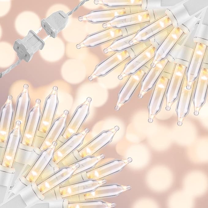 • Safty and Easily: High quality UL certified products ensure the safety of you and your family, Decorate with 150 clear incandescent mini lights with white wire will give a soft festive feel to your Christmas.