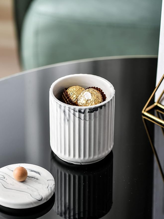 • Storage Fashion - These stylish ceramic jars and bathroom trays save space and decorate your home, stylish and organized presentation your powder room, bedrooms, bathroom,vanity organizers, shelves, entryway tablesand are also perfect for your kitchen or officewhich takes very little room.