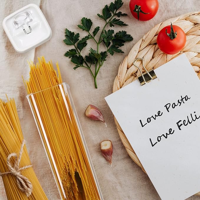 - 3 PIECES TALL SPAGHETTI CONTAINER â ITALIAN PASTA SET : Set includes 3pc 4 inch width REGULAR-Tall sized containers ( 2.0 quart), each size is perfectly calibrated to store common household staples including long noodles, spaghetti, fettuccine, linguine, lasagna, macaroni, farfalle, fusilli, also great for pantry, kitchen counter, makeup, bathroom, office supplies organization, or craft storage.