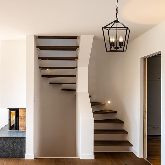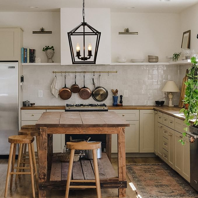 • 【Rustic Lantern Pendant Light】The Industrial black geometric pendant lantern is suitable for your farmhouse decor.vintage mid-centry elements add more fun for your home,dining room,kitchen island,foyer,entry,cafe bar.