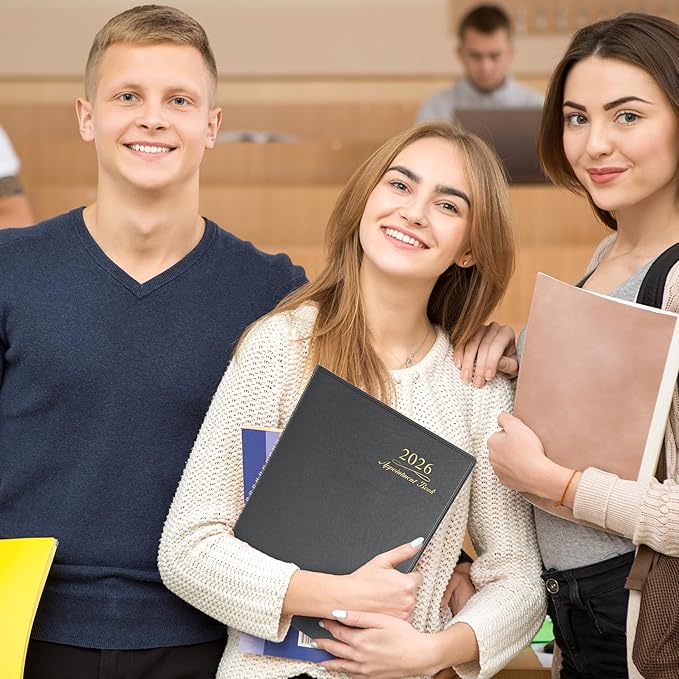 - CLASSIC DESIGN: Soft classic PU leather cover of this 2026 appointment book provides you with a comfortable carrying feeling and the wire-bound in this daily hourly planner helps keep pages secure for prolonged using and easy folding and carrying anywhere. Besides, the page size of this weekly appointment book 2026 is 8.26"x 11.4" and ruled daily block is 1.75" x 0.63".