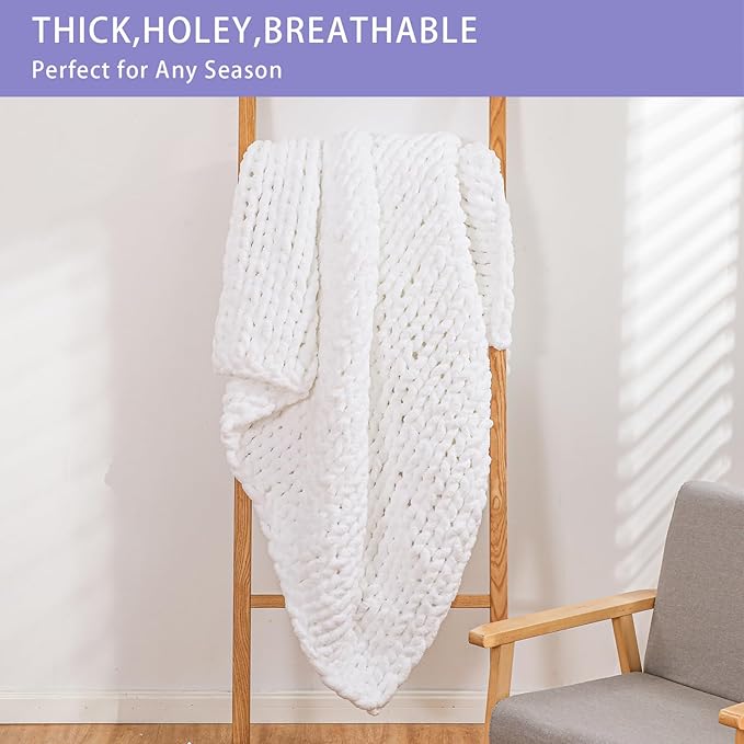 • Holey Chunky Knit Blanket: Our chunky throw blanket is 100% hand knit with cute holes, the special holey feature and classtic pattern make this plush blanket a great art dÃĐcor throw blanket for couch, bed and sofa, bringing you warmth without overheating